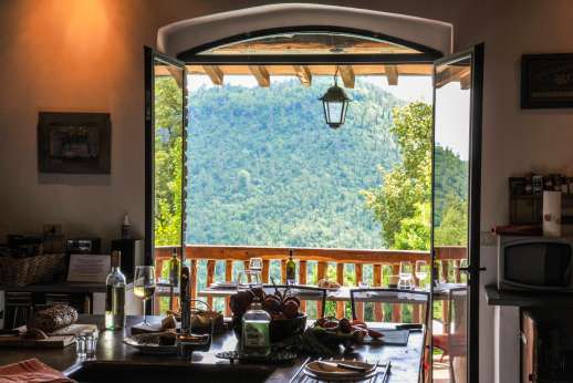 On a quiet winding road 14km/9 miles north-east of medieval Massa Marittima, with a large selection of bars, shops and restaurants, in an area known as the Colline Metallifere for its mineral wealth and resulting range of colours in the soil and rocks. The minerals, exploited in the Middle Ages, are now exhausted but the old miners’ villages remain as lovely backwaters - and the fine wines produced here have attracted a good deal of interest in recent times, and some excellent restaurants have opened to cater the enthusiasts. The village of Montieri, 7km/4 miles, boasts several shops, a very good pizzeria, tennis courts, riding stables a bank and a post office. Roccatederighi, 19km/12 miles, with great views and tiny steep alleys, is carved into a needle of rock. Siena, 1 hour.