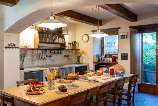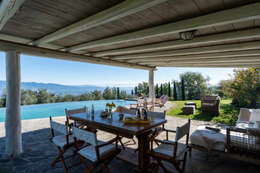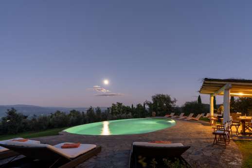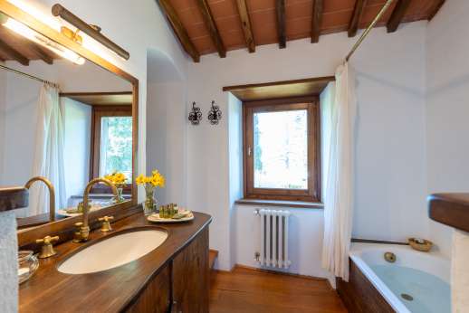 In an area known for its food and wine, not to mention splendid scenery. Montegonzi, 2km/1.5 miles, has the nearest food shop although Cavriglia, 8km/5 miles, has a better selection - and an excellent restaurant. From here a beautiful road leads into Chianti - Radda-in-Chianti is a 20-minute drive. Not to be missed is the Thursday morning market at Montevarchi, 12km/8 miles. Florence and Arezzo, a beautiful city with a famous antiques market, are both reached in 45 minutes.