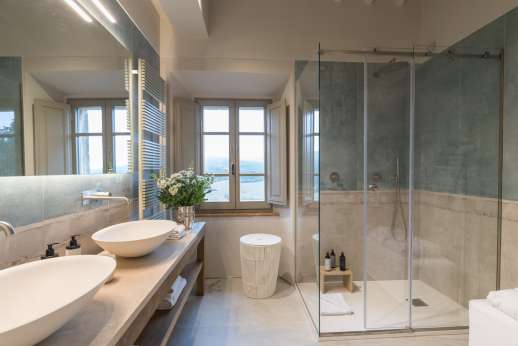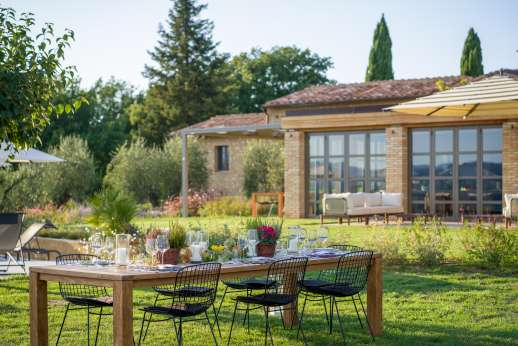 Tenute Poggiazzi boasts an enviable location, perfectly situated between Siena, Florence and Chianti. Walk along the paved road to a bar and restaurant from the villa in the charming village of Strove. Just 6km/3.7mil away, the medieval walled village of Monteriggioni offers a step back in time with its cobblestone streets, ancient towers, shops and restaurants. Siena, with its breathtaking Piazza del Campo and the magnificent Duomo, is just 20km/12mil from the villa, while Renaissance Florence is an easy 40km/25mil drive. The villa is ideally placed for wine enthusiasts to visit renowned hilltowns and wineries, including Castellina in Chianti (15km/9mil), Radda in Chianti (30km/18.6mil), and Panzano in Chianti (31km/19mil). Nature lovers can explore the Montagnola Senese reserve and the historic Via Francigena, offering scenic trails for hiking, cycling and horse riding.