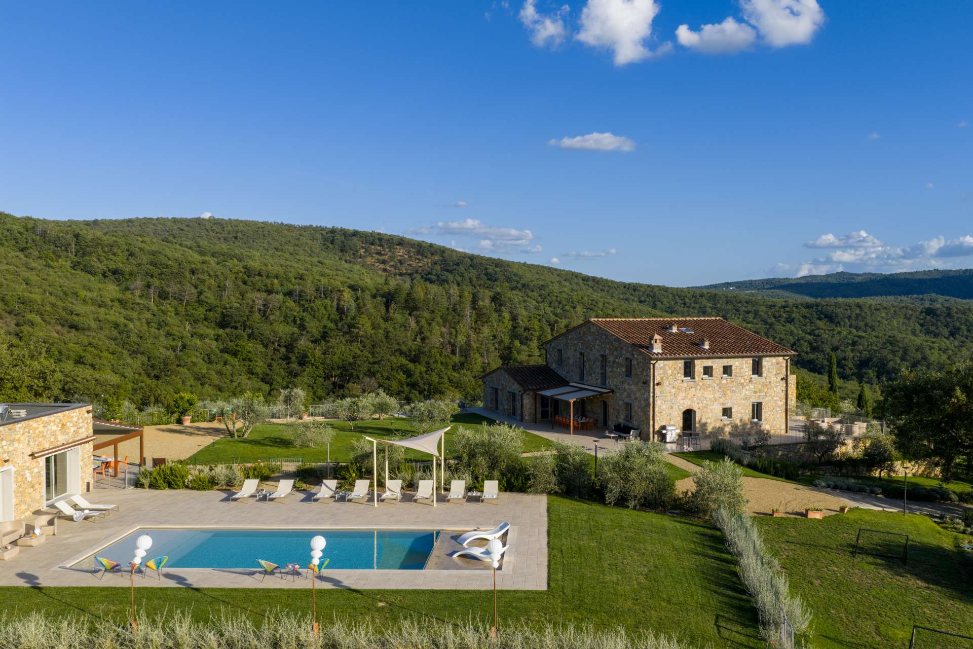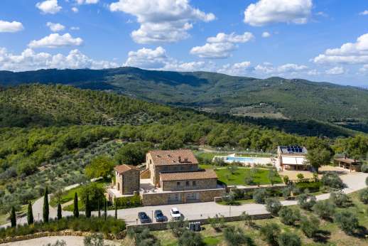 Motorway: From the A1 highway, take the Valdarno exit and continue along the SP11, SR69, and SR540 for 20km/12mil. The final stretch includes 2.4km/1.5mil of paved road before reaching a 2.4km/1.5mil gravel road leading to the property. An electric gate provides access to the villa, with parking available for up to ten cars.