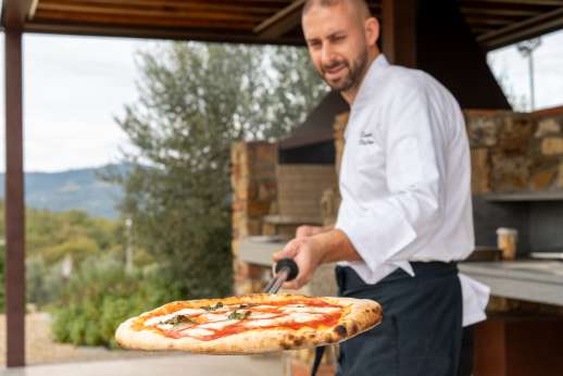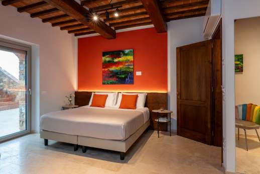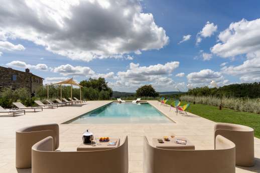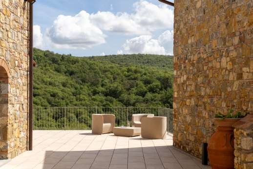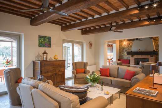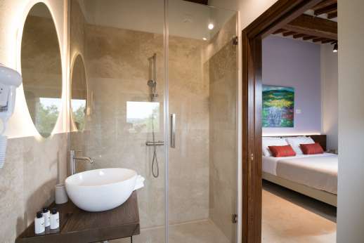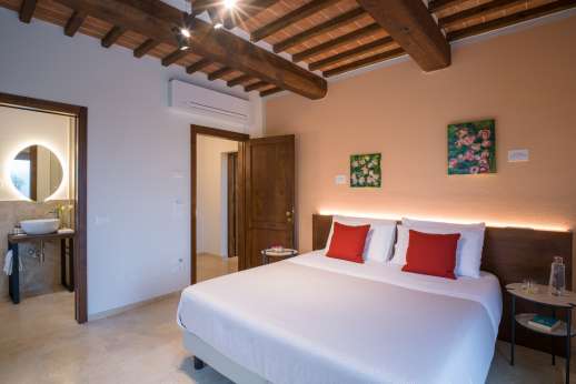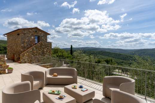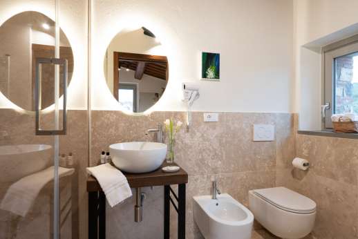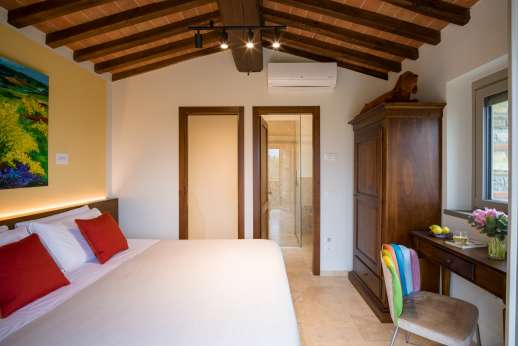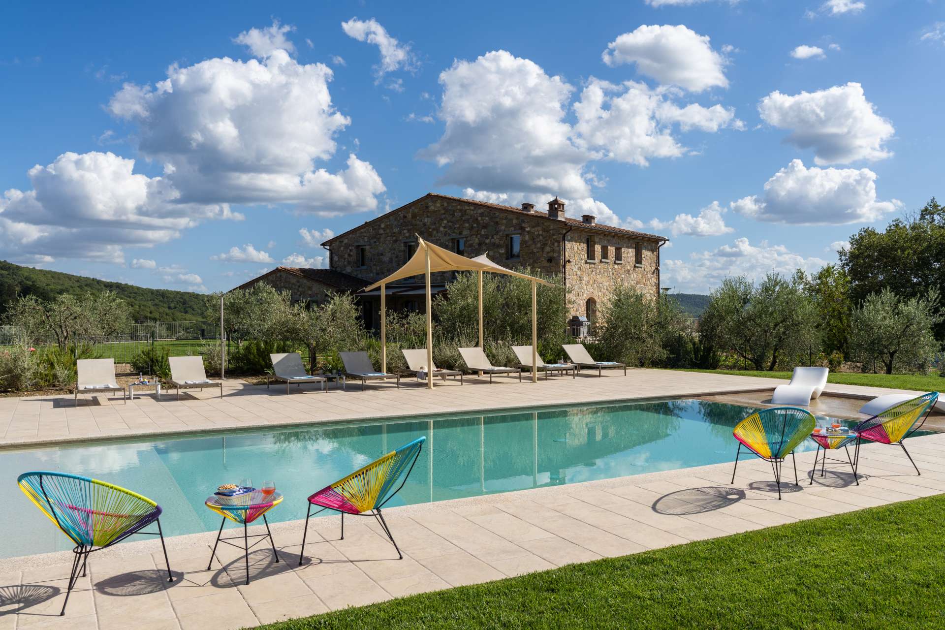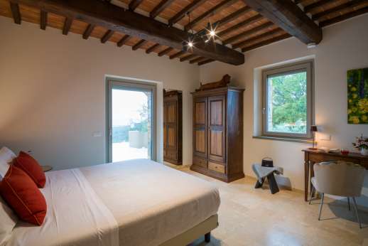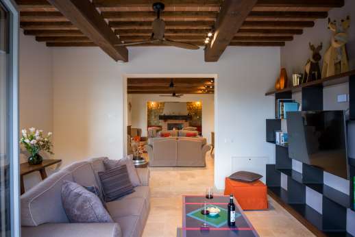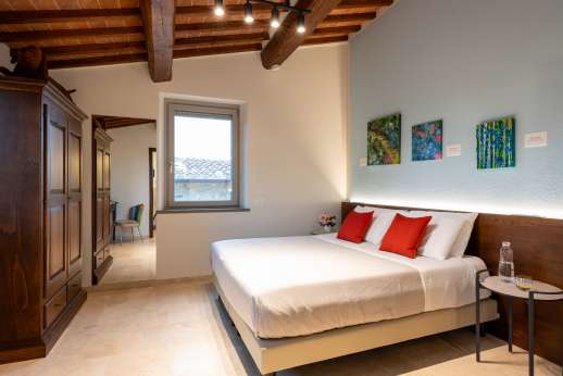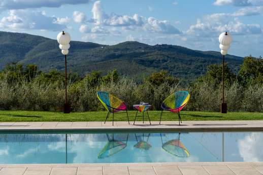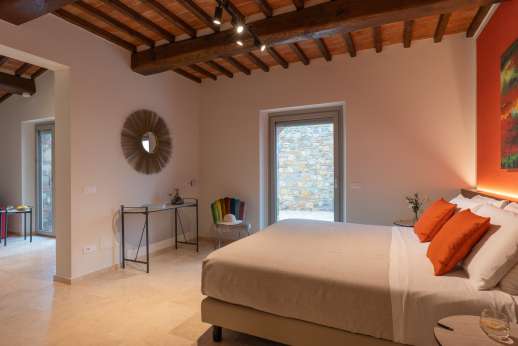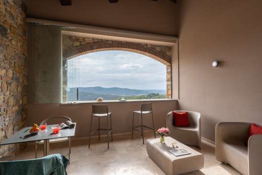 The nearby villages of Ambra (7km/4mil) and Bucine (15km/9mil) offer a wide selection of grocery shops, a supermarket, pharmacy, cafés and weekly markets. For more extensive shopping, Montevarchi is 22km/14mil away.For larger town markets, Arezzo hosts its celebrated antiques fair every first Sunday of the month, while Siena’s Wednesday market is one of the region’s most popular. Several bars lie close to the villa, including Bar della Piazza in Ambra and Bar Pasticceria Guidieri in Bucine, known for its artisanal pastries, gelato, and aperitivi. A good selection of restaurants are also within an easy 10-20 minute drive of the villa and can be personally recommended by the villa manager. The medieval estate of Il Borro is a 30-minute drive away, offering wine tastings, artisan workshops, restaurants, and a spa. Many of the region’s most iconic towns—Cortona (63km/39mil), San Gimignano (75km/47mil), Monteriggioni (54km/34mil), Pienza (62km/38mil), and Montalcino (67km/41mil) — can be reached in around an hour. The great art cities of Arezzo (40km/25mil), Siena (40km/25mil), and Florence (70km/43mil) are all within 30–60 minutes, making day trips effortless.