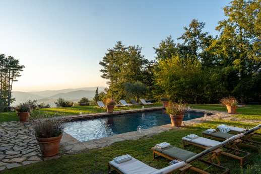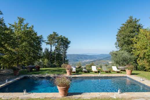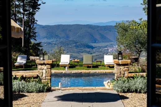 The nearby village of Pelago (5km/3mil) provides everyday essentials, including a small supermarket, pizzeria, and a handful of bars. For more extensive shopping, Pontassieve, around 20 minutes’ drive (12km/7mil), offers a large Coop supermarket with an excellent bakery and fresh food counters. Florence lies 36km/22mil to the west, making it easy to combine days in the countryside with time in the city. To the East, the landscape becomes quieter and more wooded, opening into the Casentino, where chestnut forests surround hill towns such as Poppi and Stia, as well as the secluded monastery of Camaldoli, all within an hour’s drive. Arezzo (69km/43mil) can be reached in about one hour, while Siena (98km/61mil) and the hill towns of the Chianti Classico lie around 90 minutes from the villa.