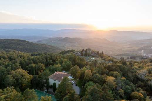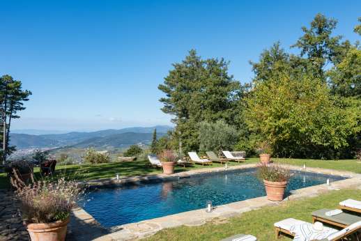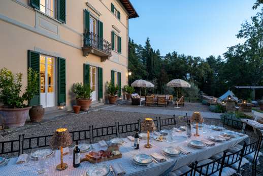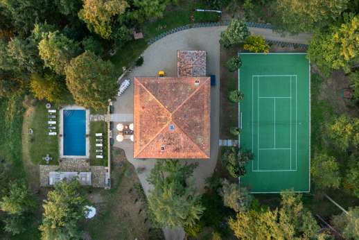Motorway: From the A1 motorway, take the Firenze Sud exit and follow signs for Viale Europa. Continue on the SP34, SS67 and SS70 for approximately 18km/11mil before turning onto a local road for a further 3km/2mil leading into Pelago. The final 5km/3mil climb through Ristonchi along a narrow, paved road. Access to the villa is via two electric gates, with parking available for up to four cars