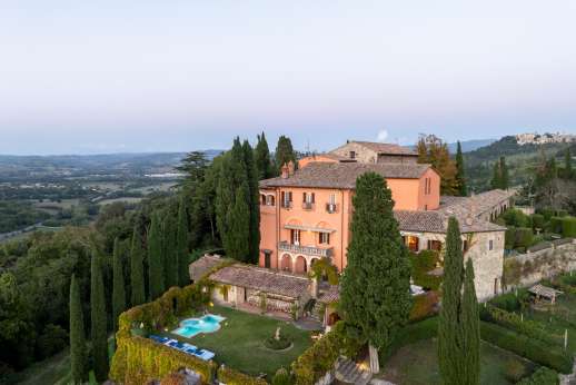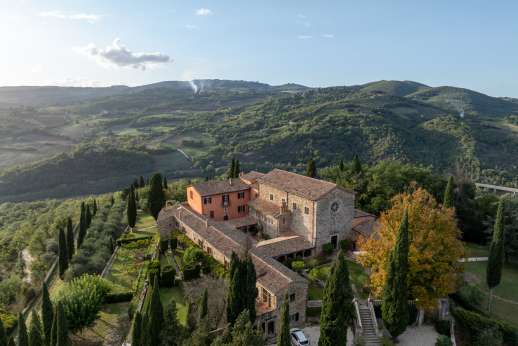 Motorway: From the E45 motorway, exit at San Damiano and follow the SP378 south towards Todi for 5km/3mil. A 750m white gravel road leads to a gated entrance. There is parking within the gates for 12 cars, plus ample additional parking outside of gates if required.