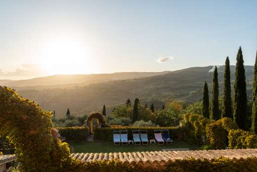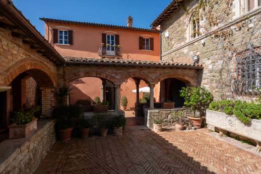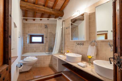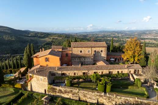 Convento San Giacomo is perfectly placed for exploring Umbria’s cultural heartland, just 2.5km/1.5mil from the hilltown of Todi. The town offers everyday essentials, a weekly farmers’ market, boutique shops, and acclaimed restaurants, with Grechetto DOC wineries on the doorstep. The famous majolica ceramics town of Deruta (28km/17.5mil) is around 20 minutes away. Golden Orvieto (35km/21.5mil), Umbria’s capital Perugia (46km/28mil), and UNESCO-listed Assisi (63km/39mil) — home of St Francis — are all well within an hour’s drive.
